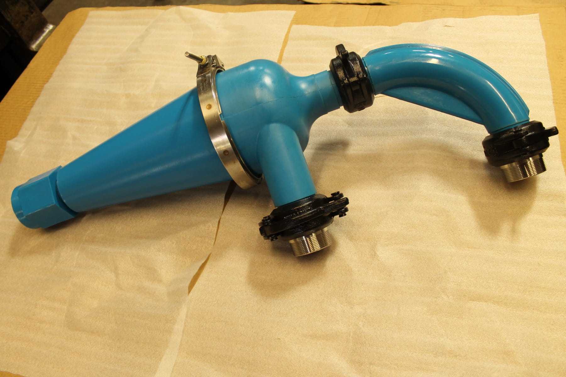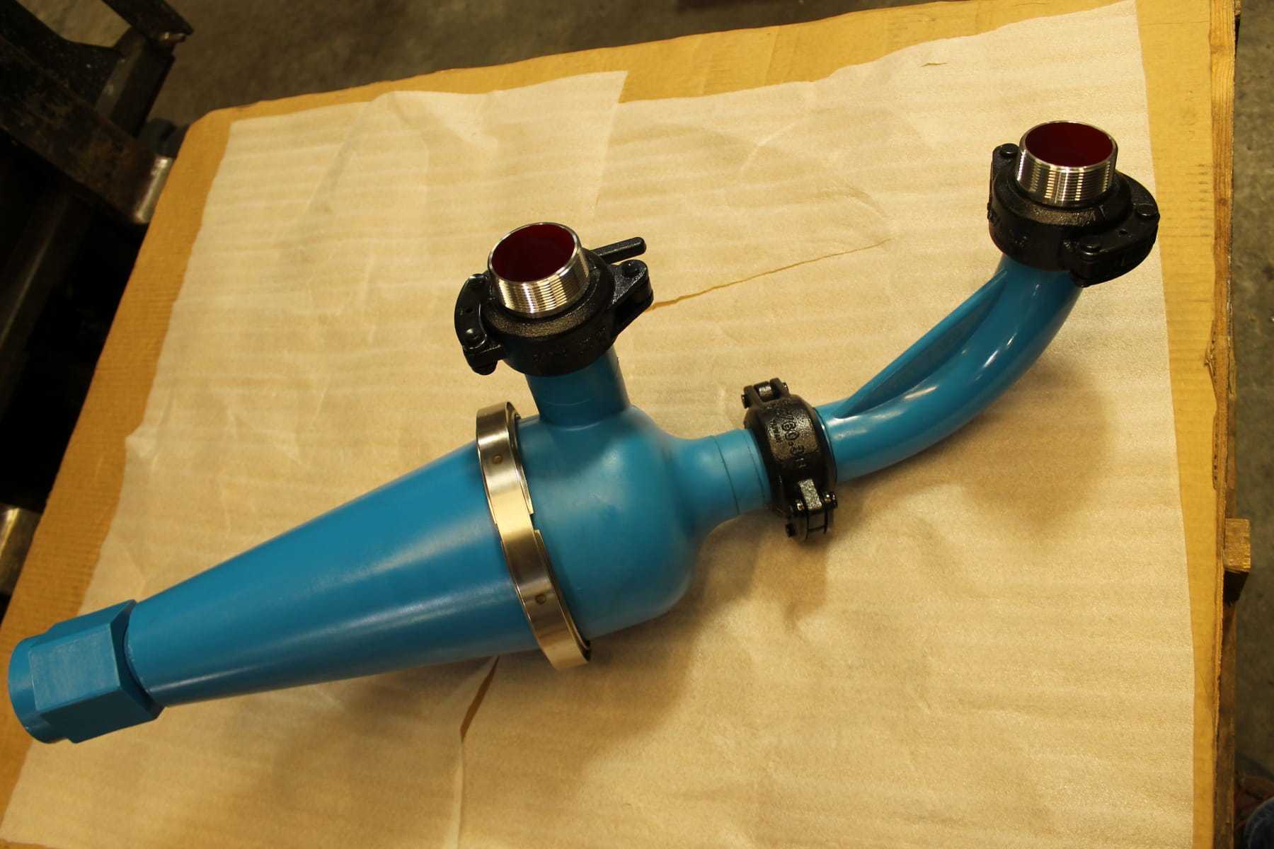 The Fluted Vortex Finder shape increases the momentum as the incoming slurry swirls around the increasing cross-sectional area, causing a more rapid separation of the suspended solids. This also prevents larger particles from “short circuiting” and reporting out the Vortex Finder with the liquid phase and smaller particles.